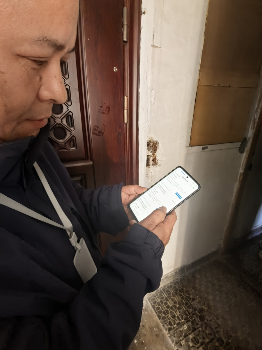 中山物业为老人上门服务前,需在手机上打卡登记。周楠 摄