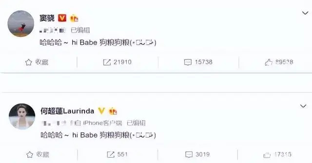 很快有网友发现,女生的样貌与何超莲高度相似,连佩戴的帽子、首饰都与她的日常搭配一致,于是猜测两人已秘密恋爱。没过多久,两人便大方官宣恋情,在微博上写下“哈哈哈~hi babe 狗粮狗粮”的俏皮文案,正式撒糖。