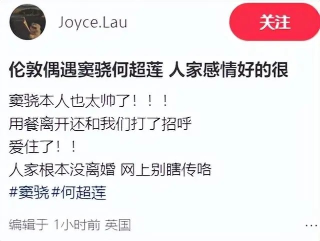 但仔细观察会发现,男生的鼻子、嘴巴形状及手部细节,都与窦骁高度一致。更重要的是,爆料者在评论区明确表示,这位男生就是窦骁——作为现场目击者,她肯定见过对方正脸。再看两人相处状态,随和自然,完全是老夫老妻的默契,何超莲也只有在窦骁身边才会如此放松,显然这就是他们本人。